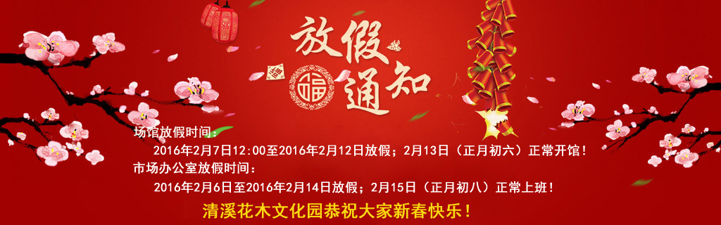 凯歌辞旧岁,瑞雪迎新年,时间悄然走过2015。在光阴荏苒中,我们尺璧寸阴,只争朝夕经历了充满收获的2015年。在这辞旧迎新的美好时刻,清溪花木文化园向一年来支持和帮助公司发展的各级领导和社会各界朋友,向一直支持市场工作的商户,向辛勤工作、团结拼搏的广大员工同志们表示诚挚的问候和衷心的感谢!